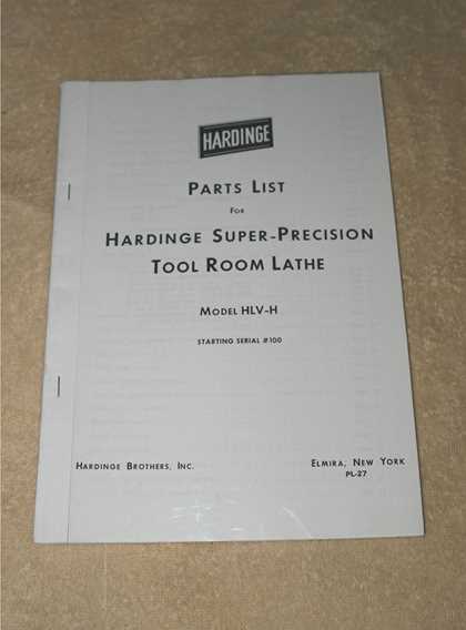 Hardinge HLV-H Parts list.......Approximately 71 pages, fully illustrated parts list with sectional drawings and parts numbers....